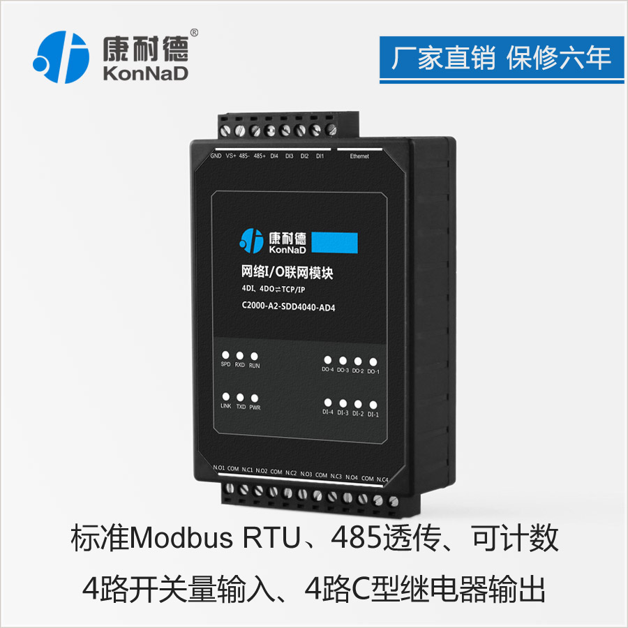 康耐德網絡型開關量模塊4路開關量輸入4路繼電器輸出485透傳