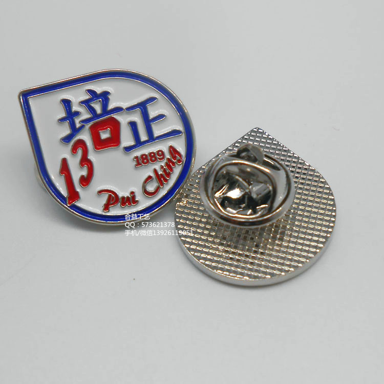徽章.胸章.襟章.胸針.此產品材料為青銅.鋅合金.鐵.鋁片等工藝有蝕刻.沖壓.合金壓鑄.上色效果有烤漆.軟琺瑯,可電鍍金.鍍鎳.鍍黑鎳.鍍霧金.鍍雅鎳等配件一般為安全別針或蝴蝶帽.也有客戶選擇高級卡帽和橡膠帽,普通包裝,價格合理,歡迎有需要的客戶來電咨詢,也歡迎登陸我們的網站查看,謝謝。