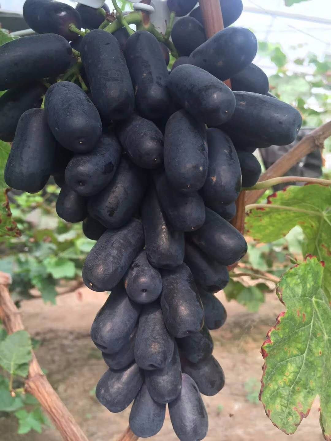甜蜜藍寶石葡萄苗廠家,甜蜜藍寶石葡萄的另外一個名字澳洲棉花糖無籽長黑提。外形為藍黑色,閃閃發光。果粒圓柱形、長5cm左右,猶如小手指,秀美超常。其它無籽品種的果粒通常都很小,須采用激素膨大。甜蜜藍寶石雖然無籽,果粒卻不用激素膨大,自然達到10克左右。糖度可達19到22。 甜蜜藍寶石葡萄為中熟品種,露地8~9月成熟,著色快速而均勻。成熟后掛樹1個月以上,因果刷堅韌而不易掉粒、果粒不擁擠而不宜破粒、果尖不軟而不易爛粒,很耐貯運。 甜蜜藍寶石葡萄用刀切成片,風味純正、脆甜無渣,可溶性固形物20%以上,干燥少雨糖度更高,甚至高達27%,容易曬成藍黑色的大型葡萄干,遠超的曬干品種黑加侖。 甜蜜藍寶石葡萄苗易栽培,果粒抗炭疽病、黑痘病、白腐病和白粉病,但葉片不抗霜霉病,所以宜棚內栽植或避雨栽植。甜蜜藍寶石葡萄不用激素拉穗、不用激素脫籽、不用激素膨大、穗不緊密而疏果省工。