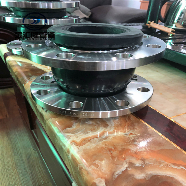 橡膠接頭一般由內膠層、織物增強層(增強層有多層刮膠錦綸簾子布)、中膠層、外膠層、端部加固金屬環或鋼絲圈,經高溫、高壓硫化成型后,與金屬法蘭或平行接頭松套組合而成的復合橡膠管。此產品利用了橡膠的高彈性、高氣性、耐介質性、耐候性和耐輻射性等優點,可降低管道的振動及噪聲,并可對因溫度變化引起的熱脹冷縮起補償作用。