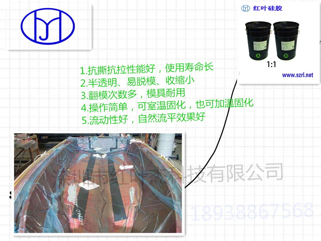 注意:此硅膠不可和100:2的縮合性硅膠混合使用,以免發生“中毒”現象,用過縮合性的模具用天那水、白電油、香蕉水清洗。