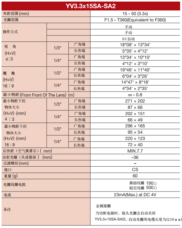 本網頁所展示的有關 深圳市行思電子科技有限公司 為你提供的“YV3.3X15SA-SA2L/富士能鏡頭”監控攝像機價格、型號、圖片、廠家等信息。如有需要請撥打電話:18503015761。