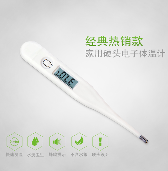 從前的水銀體溫計被取代的最主要原由是它具有玻璃水銀的毒性、容易破碎、測量時間長、存放不方便的弊端,而電子體溫計是快速讀數精準,測量便捷,采用環保材質,避免孩子受傷,深受家庭喜愛,是眾多行業投資的趨勢。健奧智能體溫計生產廠家發現還有一些醫院為了低成本而采購和使用水銀體溫計,前兩天就有新聞報道,讓人心驚膽戰。
