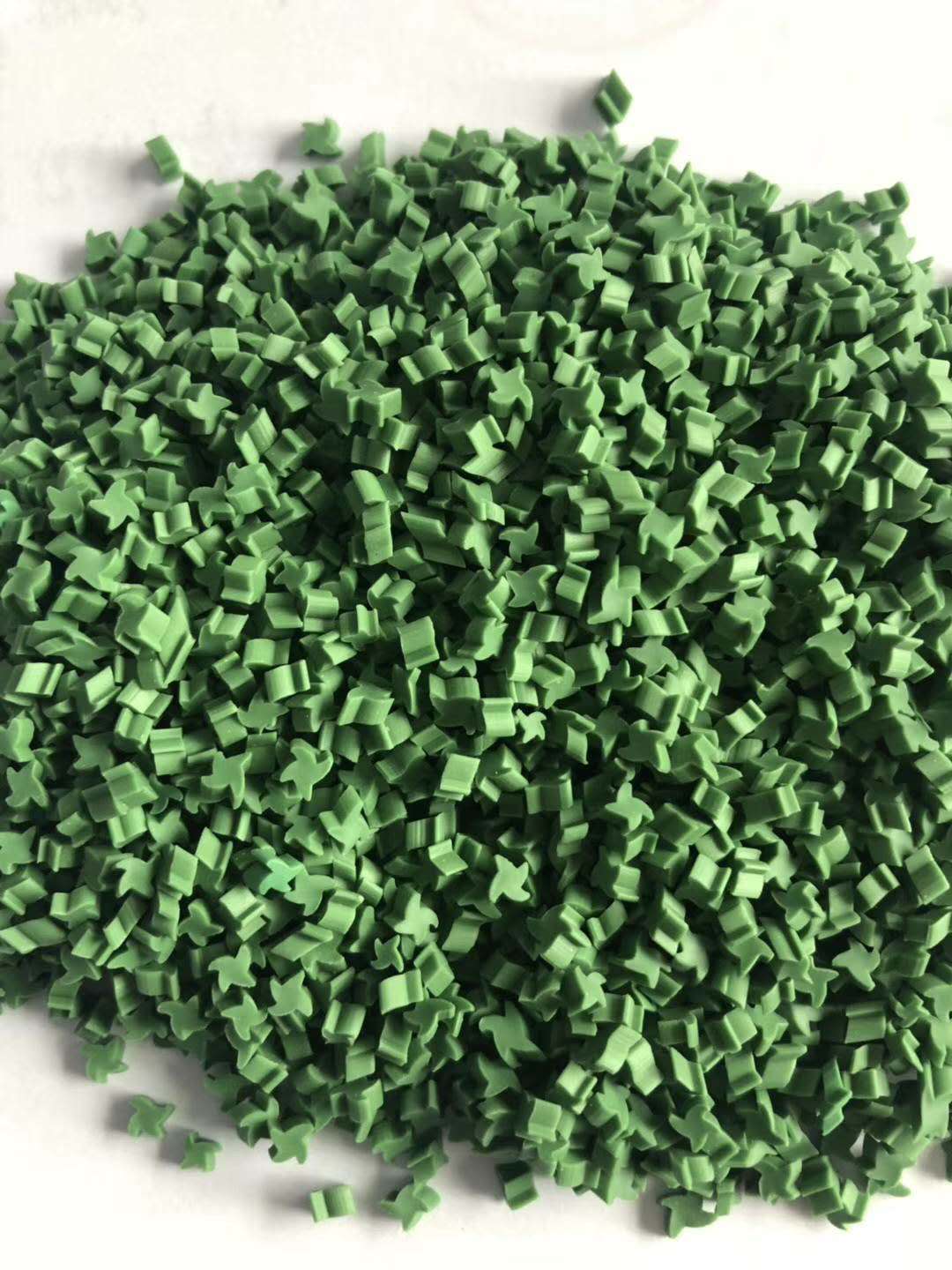 我公司生產的TPE沖草顆粒形狀為大風車,跑道打底顆粒形狀與EPDM形狀一樣。