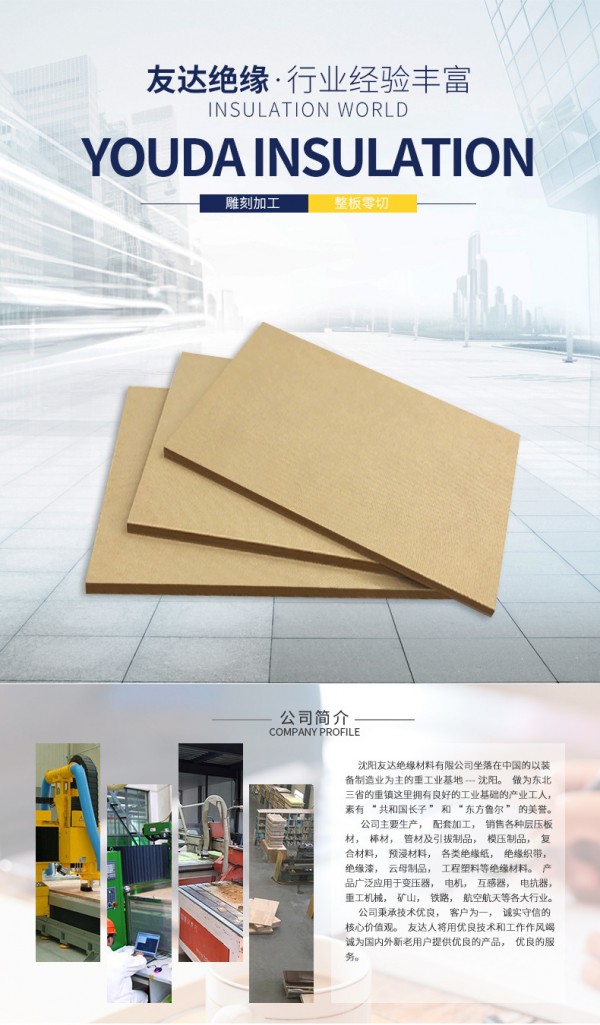 沈陽(yáng)友達(dá)絕緣材料有限公司主要生產(chǎn),配套加工,銷售各種層壓板材,棒材,管材及引拔制品,模壓制品,復(fù)合材料,預(yù)浸材料,各類絕緣紙,絕緣織帶,絕緣漆,云母制品,工程塑料等絕緣材料。產(chǎn)品廣泛應(yīng)用于變壓器,電機(jī),互感器,電抗器,重工機(jī)械,礦山,鐵路,航空航天等各大行業(yè)。